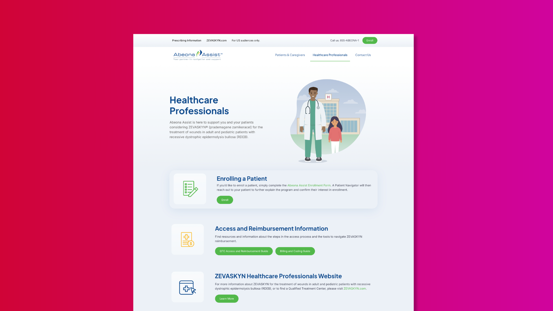 Abeona Assist is the patient support program for ZEVASKYN, the first and only FDA-approved autologous cell-based gene therapy for recessive dystrophic epidermolysis bullosa (RDEB), a rare and devastating blistering skin disorder that affects both adults and children. For patients and families navigating RDEB, access to clear, trustworthy information and compassionate support is not a convenience. It is a lifeline.
