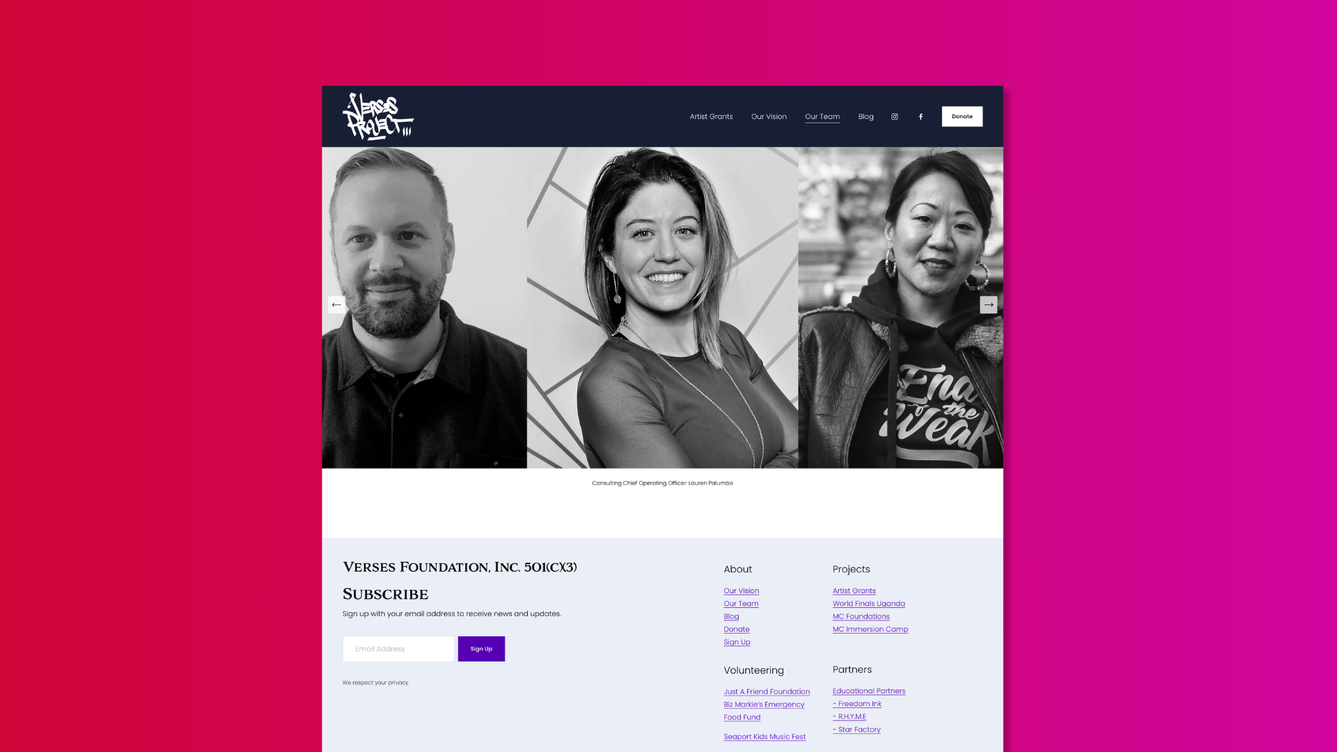 The Verses Project is a non-profit organization founded in 2020 to honor the legacy of Jason "Vice Verses" Williams, a pioneer in the hip-hop community. Dedicated to empowering aspiring artists through financial support and educational programs, The Verses Project exists to give talented young artists the resources and opportunities they need to pursue their craft.